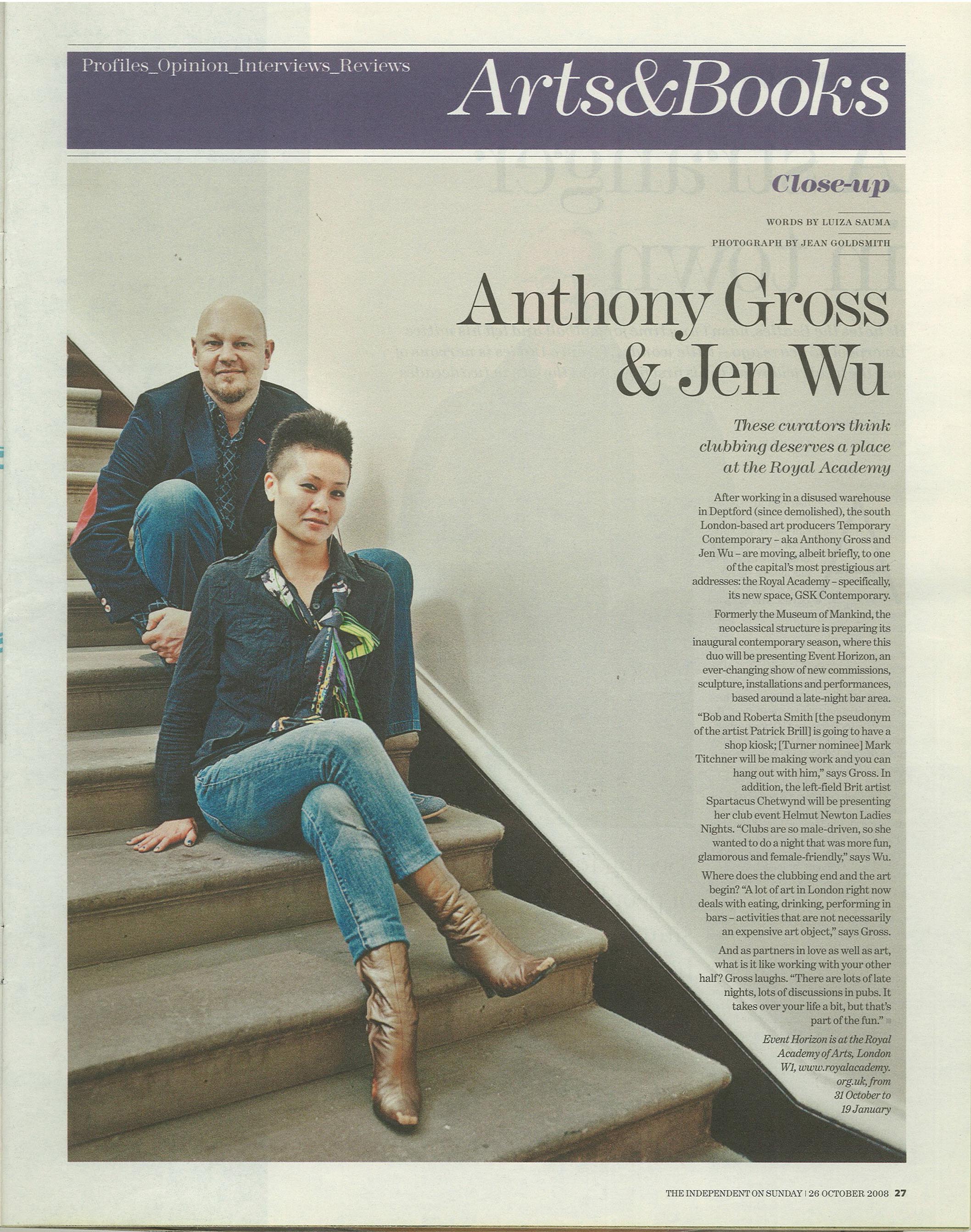 ‘Close-up: Anthony Gross & Jen Wu.’ Luiza Sauma. The Independent on Sunday. 26 Oct 2008.