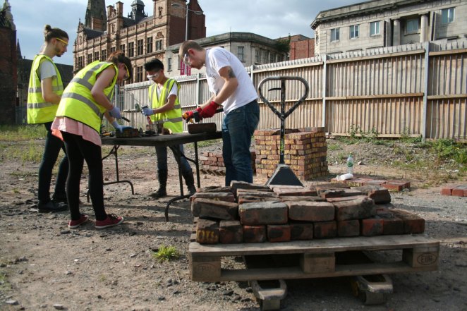 Integral to the project is the opportunity for the local community and general public to co-develop and create The Salford Wall. It’s to not only rebuild a physical structure as a means of reconnecting with Chapel Street’s disappearing heritage, but to be guided by the social history and principles embedded in the building and its bricks – how and why the building was built, by working class labourers as a structure of unified care and support. It’s a history that, through the building’s origins and use, is gradually being rediscovered and encompasses not only that of Chapel Street and Salford, but has links to Liverpool (via Royal Liver) and also Manchester (the bricks came from Bradford Colliery). Its to use this history and heritage in a very real sense.