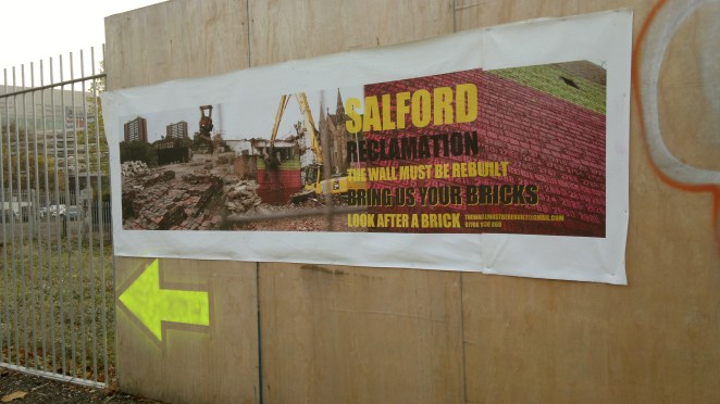 Previously agreed as a temporary public sculpture to last until 2016, The [Salford] Wall (once rebuilt) now has the opportunity to remain permanently on Chapel Street, at the corner of Islington Park.
